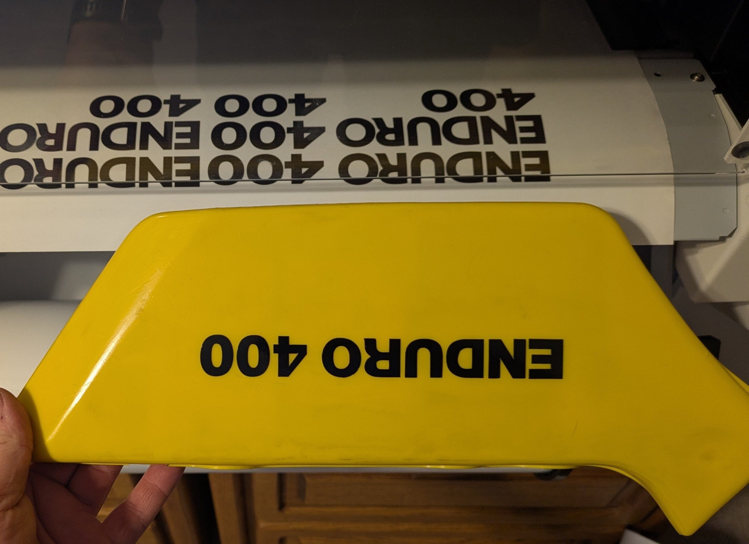 1977- 79 Yamaha DT Decal set, Dt400 Side panels. Graphics Decals Stickers,250, 400 OEM quality and match, not like others. High quality long lasting vinyl.