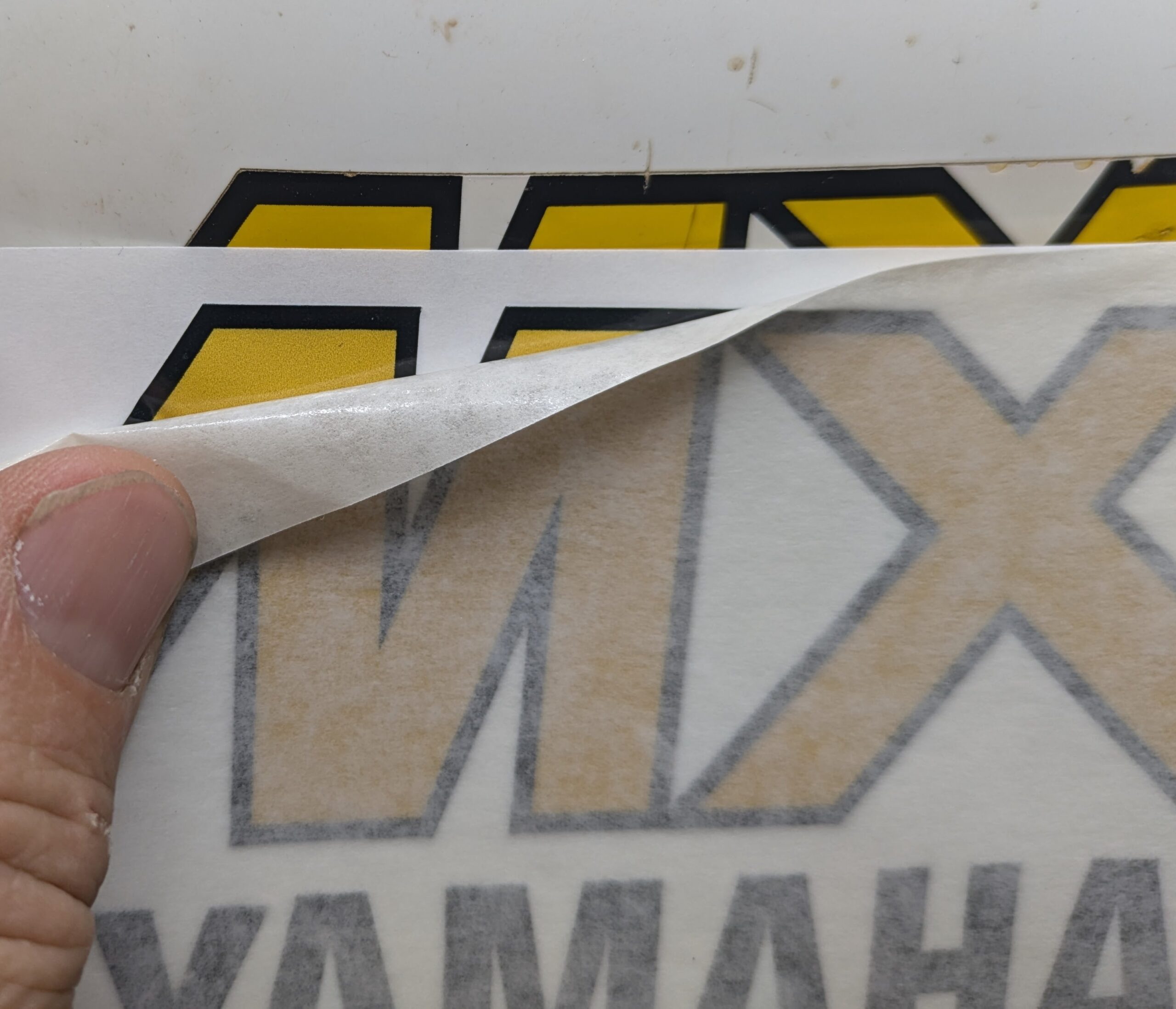 Yellow Yamaha Gas Tank decals set includes left and right side decals.